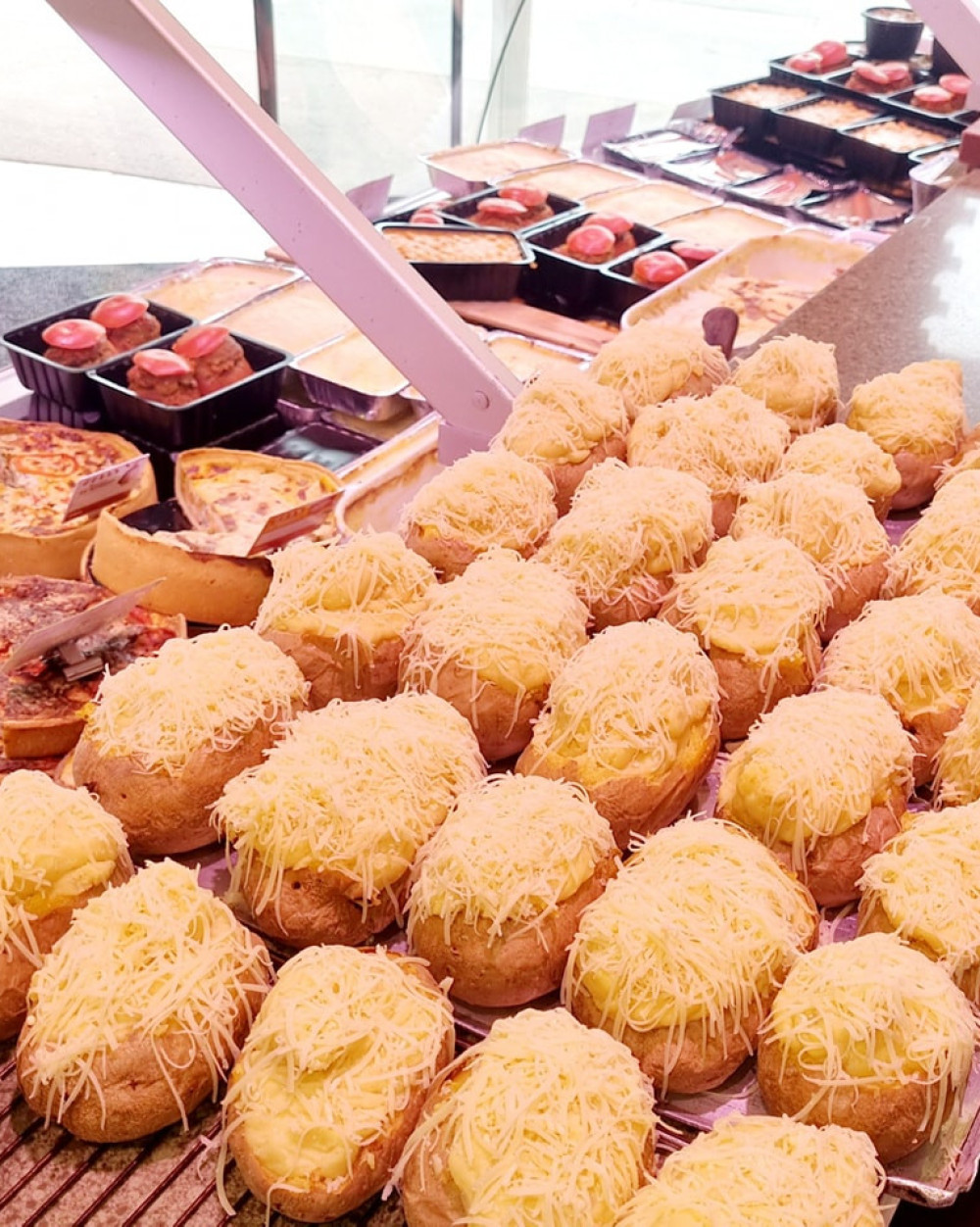 Pomme de terre reconstituée, agrémentée d'échalottes et de fromage.